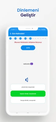 Again uygulamasına hoş geldin. Again ile her gün farklı türlerde senin için hazırlanan kelime gruplarını çalış. Kelimenin anlamanı öğren, çoktan seçmeli sorular ile kendini test et. Kelimeyi dinle ve telaffuzunu öğren. Ek çalışmalar ile dinleme becerini üst seviyeye çıkar. Bitmedi sıra sende öğrendiğin kelimeyi telaffuz et ve kelime ile bağını kuvvetlendir. Sadece bu kadar mı? Elbette hayır! Öğrendiğin kelimeleri yazarak daha çok özümsemeyi sağla. Kolay ve zor kategoriden oluşan yazma deneyimi ile kelimeyi zihnine kazı.