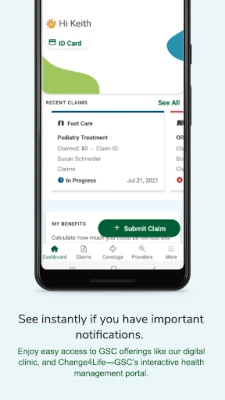 • Search your claims history and get the real time status of recently submitted claims as well as details of previously processed claims.